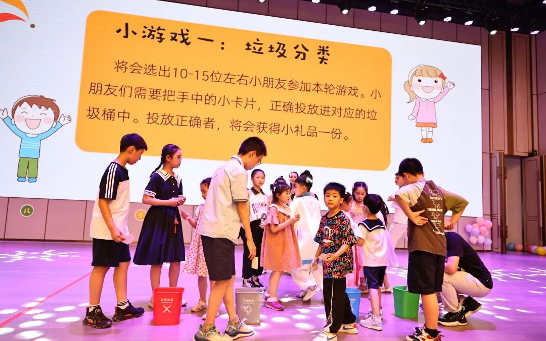 在接下来穿插的“小螃蟹运球”、“你抛我接”、“夹球跳”以及“保龄球”等小游戏环节中,小朋侪和家长精彩的配合体现让现场时时爆发热烈的掌声。小朋侪们勇于挑战,起劲拼搏,与家长间的亲情互动更是把整场晚会推向热潮。时代,更有寓教于乐的垃圾分类、清静隐患识别大挑战等抢答环节,进一步增强小朋侪们的垃圾分类意识和清静意识。