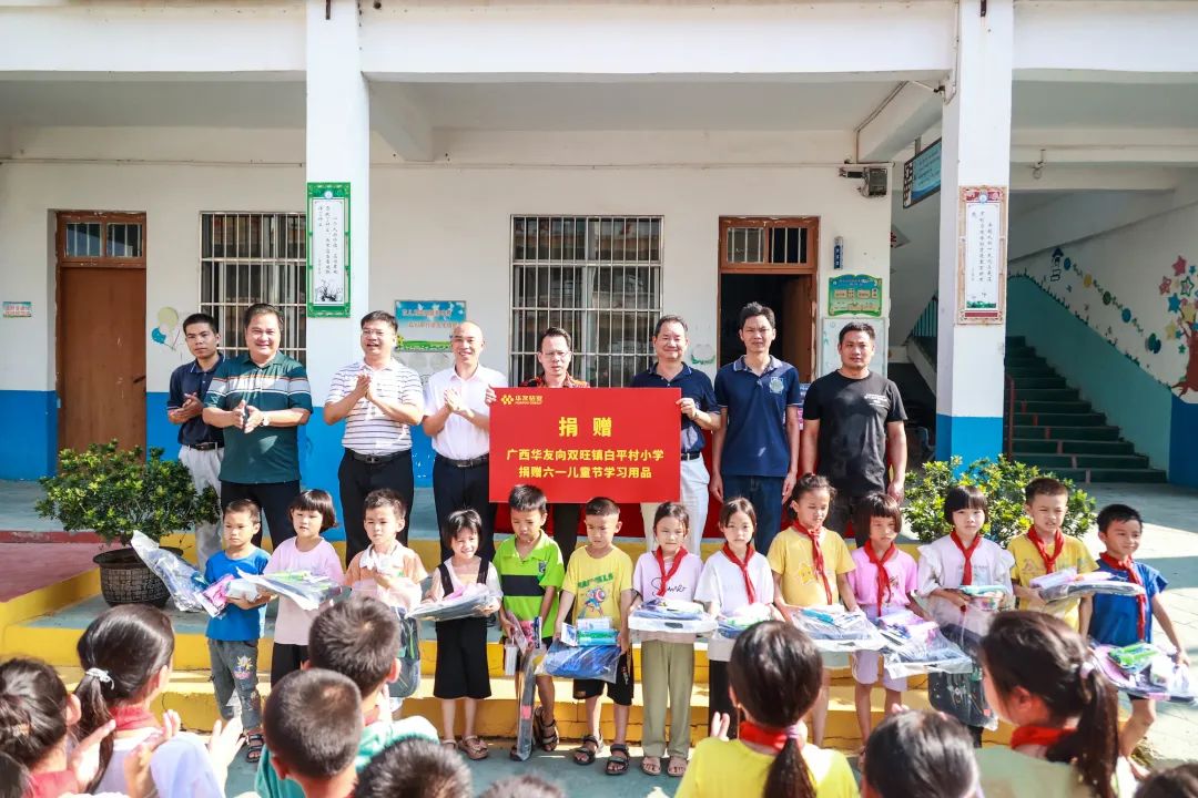 在儿童节来临之际,广西尊龙集团有限公司到锂电项目周边的松旺镇潭莲村,双旺镇白平村、邦杰村、曾村和双旺镇中心小学等5个村级小学举行慰问,赠予书包、铅笔等学习用品作为儿童节礼物。
