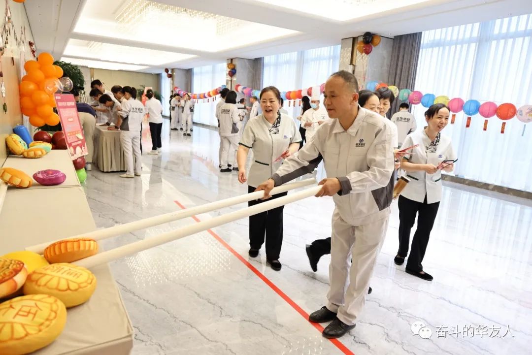 现场运动气氛活跃,陪同着欢快的音乐,同事们徘徊在协调欢喜的中秋气氛中。