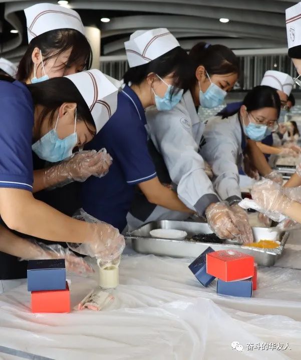 整装完毕,在面点师傅的教学下,2023届大学生们最先了手工月饼之旅。搓馅料、包馅、模具按压……大学生们分工明确、有条不紊,兴致勃勃地交流制作要领,分享自己制作的奇异造型。在一直的欢声笑语中,一个个小巧细腻的月饼新鲜出炉。
