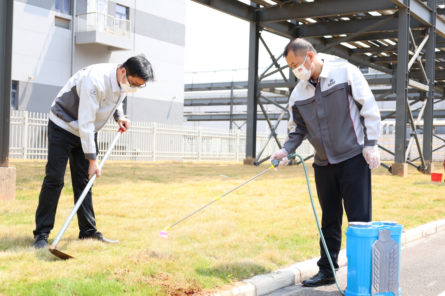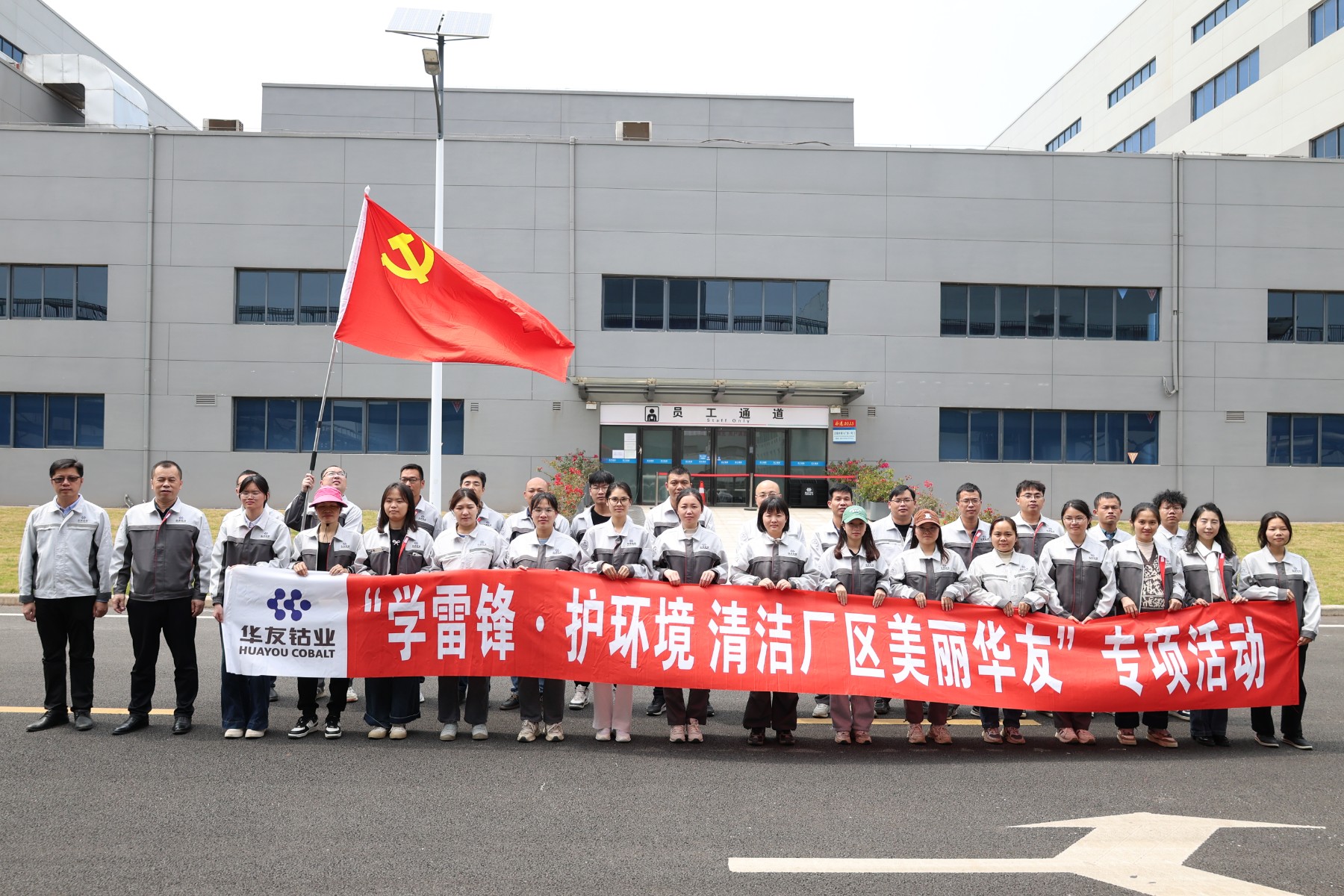 运动当天,阳灼烁媚,广西基地全体党员及各部分加入职员汇聚在厂区内,分为三个小组5大区域开展清洁、整理与消杀事情。