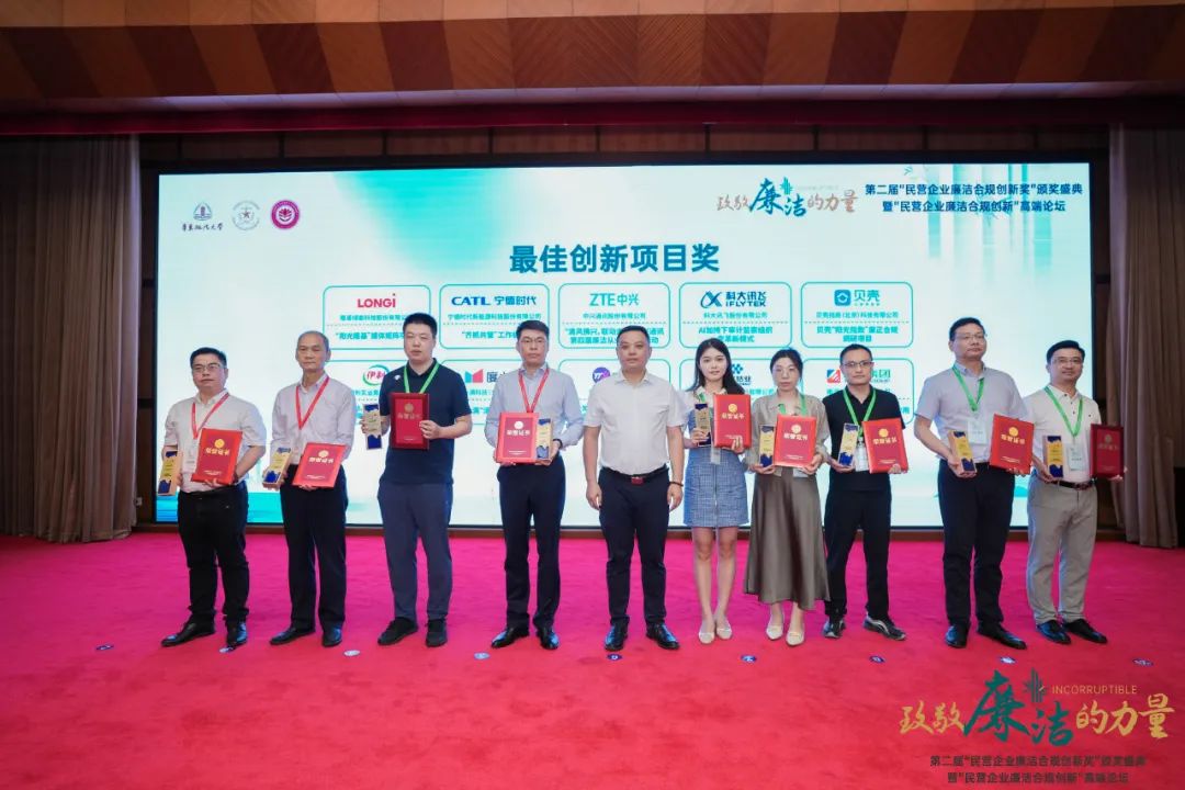 2023年8月3日,第二届“民营企业清廉合规立异奖”在华东政法大学长宁校区举行颁奖盛典,尊龙集团有限公司钴业监察网格深化项目荣获“最佳立异项目奖”奖项。