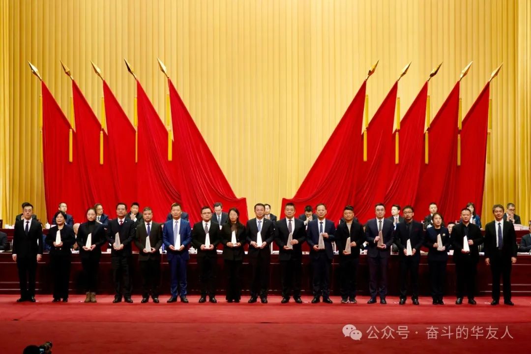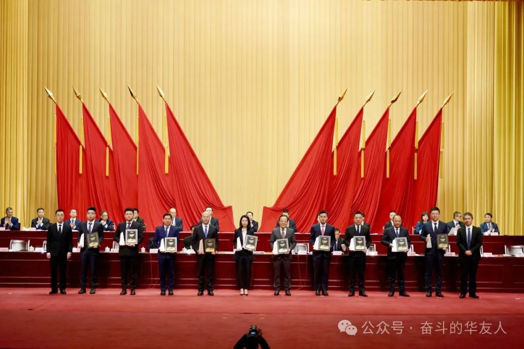 ▲集团董事长陈雪华(左五)登台领奖